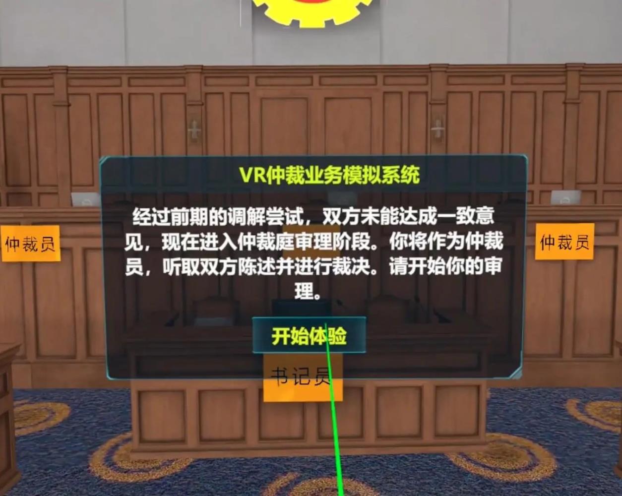 通過沉浸式虛擬現實技術,高度還原勞動仲裁的全流程場景。用戶將置身于虛擬環境中,模擬體驗勞動仲裁的各個環節,包括受理案件、材料準備和仲裁庭審理,以提高對仲裁業務的理解和操作能力。體驗結...